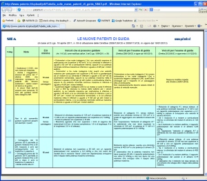 La tabella è stata redatta in basa alle indicazioni presenti nel D. Lgs. 59/2011 e nell'art. 116 del Codice della Strada e completata con quanto stabilito dalle circolari ministeriali sull'argomento.