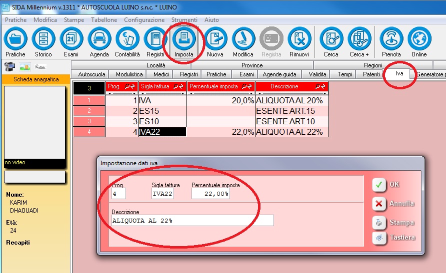 Per tutti i clienti che utilizzano la contabilità di SIDA la procedura corretta per adeguarsi è di creare una nuova aliquota al 22% ed andare a correggere il listino prezzi con la nuova aliquota.