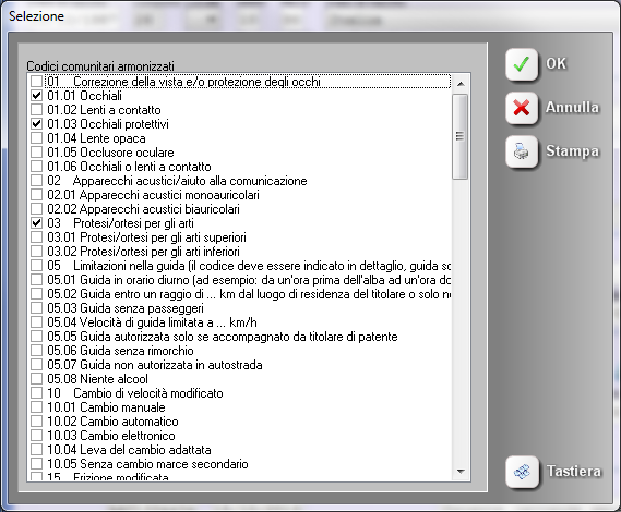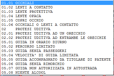 L’elenco dei codici comunitari pubblicato nella gestione è completo e permette di inserire tutti i codici previsti dalla normativa, relativi sia alla persona sia al veicolo.