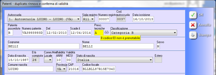 Nell’intestazione sono riportati il n° di protocollo (marca operativa) della prenotazione ed il codice dell’autoscuola/agenzia relativo alla prenotazione, sia in chiaro, sia con il codice a barre, nel caso in cui il medico fosse dotato di lettore.