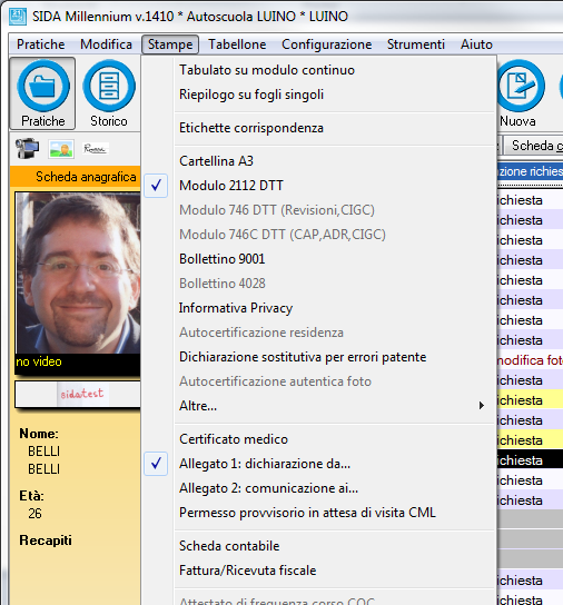 Nel menù delle stampe, per le conferme di validità, è stata aggiornata la modulistica: