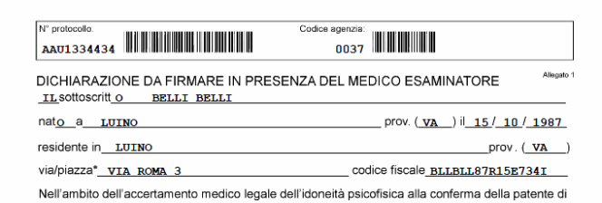- Una dichiarazione sostitutiva nel caso in cui la vecchia patente riportasse dati non validi dal punto di vista anagrafico
