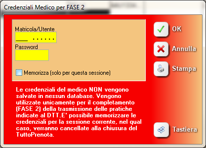 Questa finestra compare quando, per la FASE 2, sono NECESSARIE le credenziali del medico.