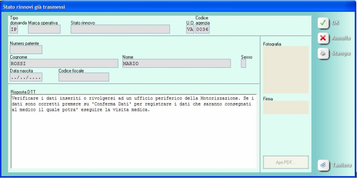 Questa nuova finestra compare quando si preme il tasto trasmetti nei rinnovi.
