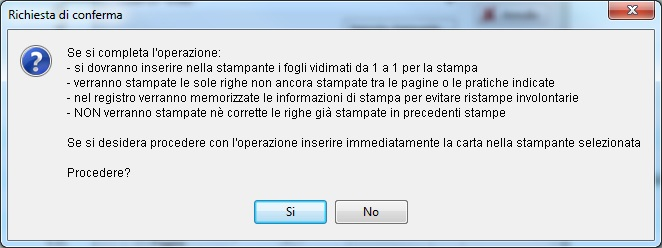 Avviando la procedura di stampa appare questa schermata, alla quale bisogna premere di SI per procedere.