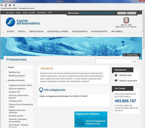 Abbiamo inserito nella schermata iniziale del software un Accesso rapido al Portale dell’Automobilista che permette di scavalcare la pesante home page in cui vanno inserite matricola e password: