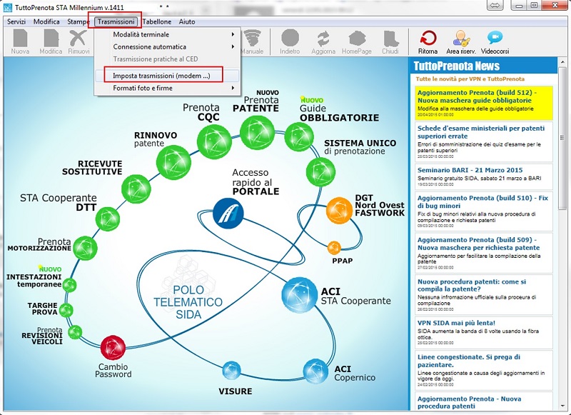 per ovviare al temporaneo malfunzionamento della linea SIDA VPN, nel SIDA TuttoPrenota è stato implementato un sistema di emergenza che vi permette di inviare ugualmente le vostre pratiche più urgenti al DTT.