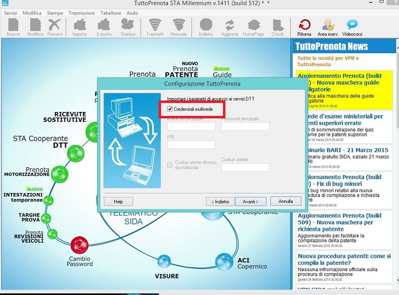 Se nel passo 2) vi appare il flag in Credenziali multisede come nella schermata qui sotto: