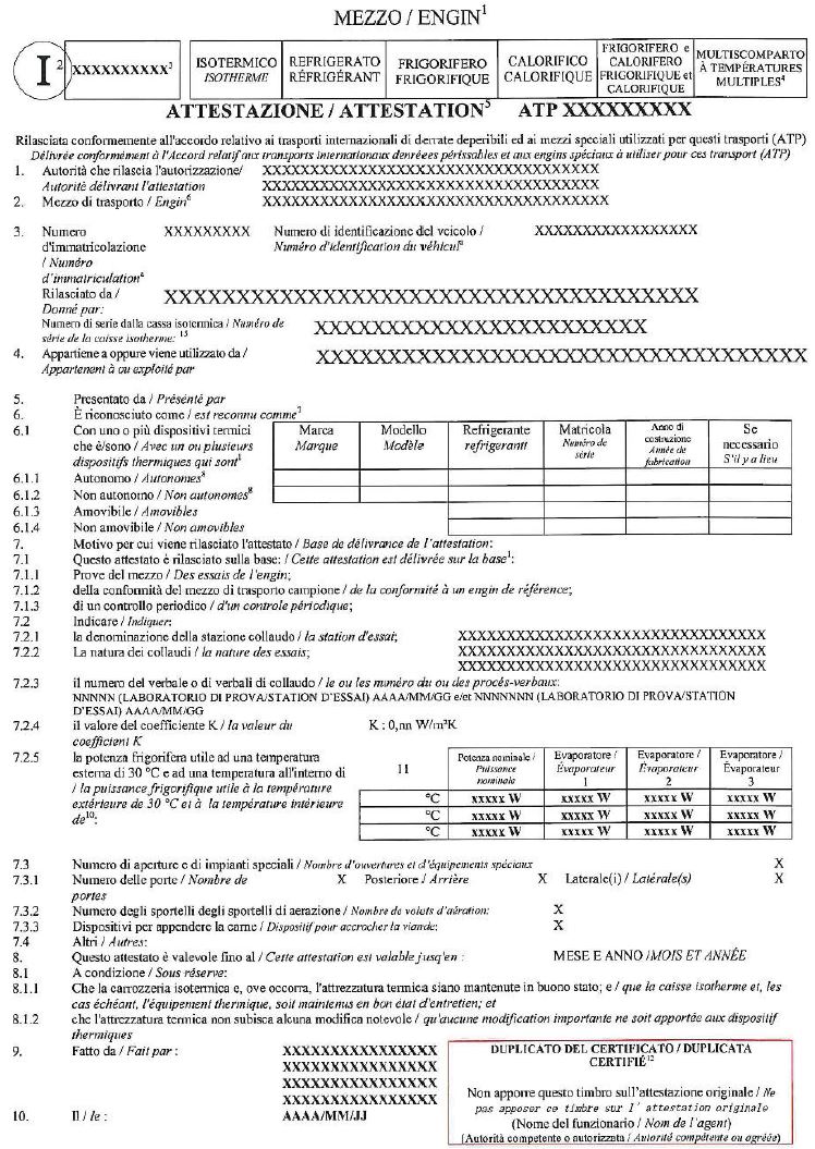 I dati relativi a "n. identificazione", "costruttore", "mese/anno di costruzione" vanno desunti dal certificato ATP scaduto o in scadenza e da targhette precedenti o dalla marcatura del costruttore della furgonatura isotermica, come previsto dal paragrafo 6 allegato 1 Appendice 1 dell'Accordo.