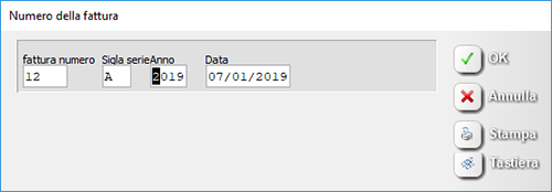 Se viene compilata una sigla (di massimo tre lettere), nell'esempio è usata la lettera A, le fatture saranno numerate 1/A/2019, 2/A/2019 ...
