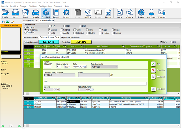 SIDA esegue automaticamente il calcolo per tutte le fatture e ricevute fiscali emesse.
