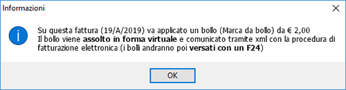 Per le fatture su cui viene applicato il bollo compare il seguente messaggio:
