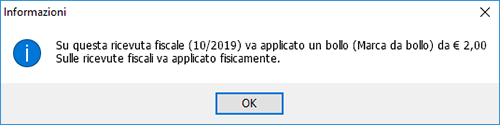 Nel caso delle ricevute fiscali invece compare il seguente messaggio: