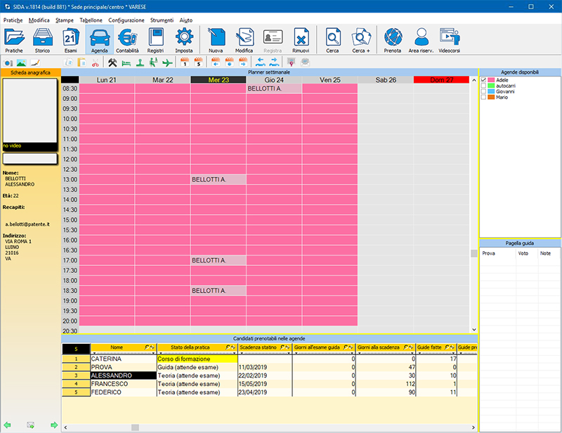 • Lato Autoscuola: Agenda Guide da SIDA Gestione