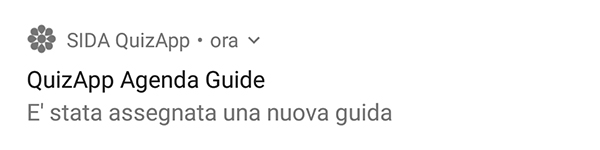 2- SIDA Quiz App già installata sullo smartphone e in uso: i candidati che stanno già usando SIDA Quiz App possono ricevere la notifica della nuova funzionalità “Agenda Guide” secondo due modalità (teoriche e non ancora implementate):