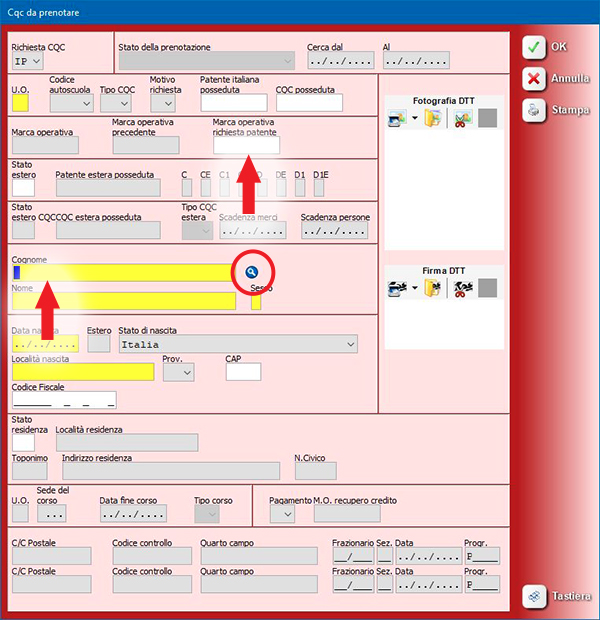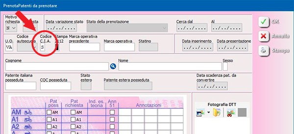 Prenota patente: gestione codice C.I.A.
