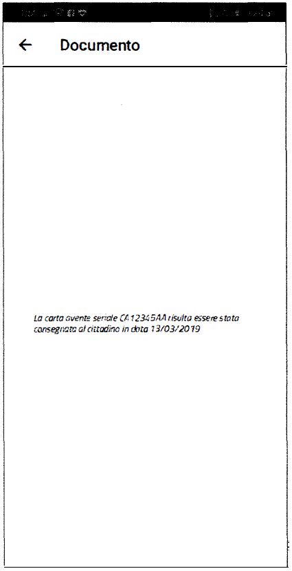 Nel caso in cui la carta non sia ancora stata consegnata al cittadino o il Comune non abbia provveduto a inserire la data dell'effettiva consegna, l'app restituisce il seguente messaggio: