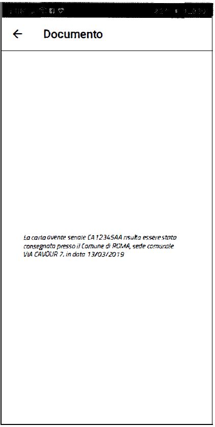 La carta avente seriale risulta essere stata consegnata presso il Comune di , sede comunale , in data
