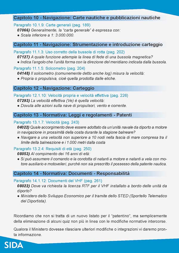 - Patenti nautiche A e C (Listato Base e Vela) - alcuni quiz sono stati depennati
