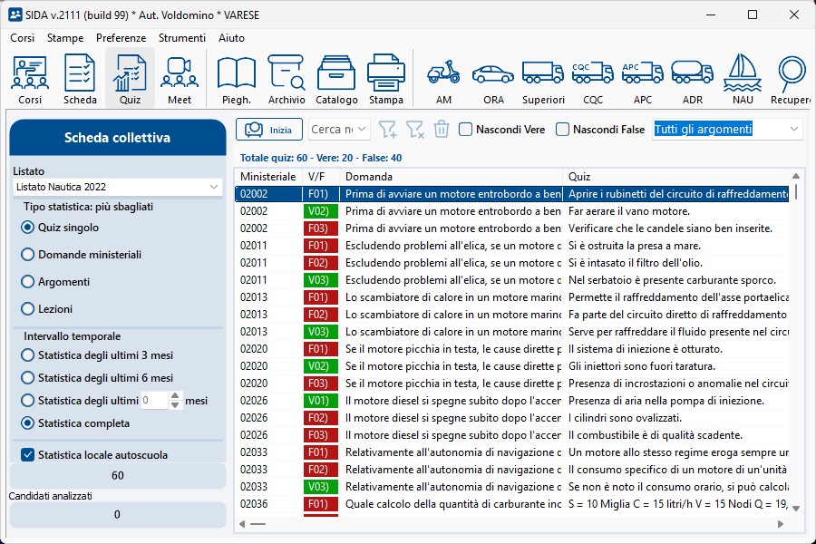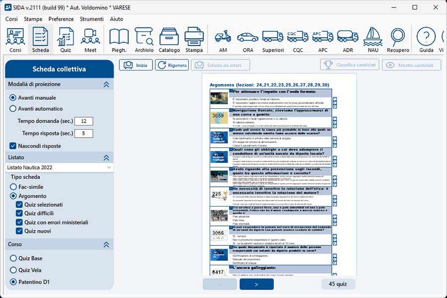 - Database di 792 domande (autonomo e diverso rispetto al listato nautica base)