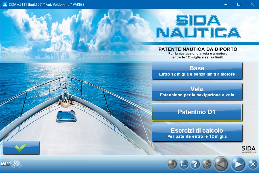 SIDA AULA, QUIZ e GESTIONE, nonchè la linea editoriale di SIDA sono stati integrati con tutto il materiale didattico necessario per l'attuazione dei corsi per la patente nautica D1.