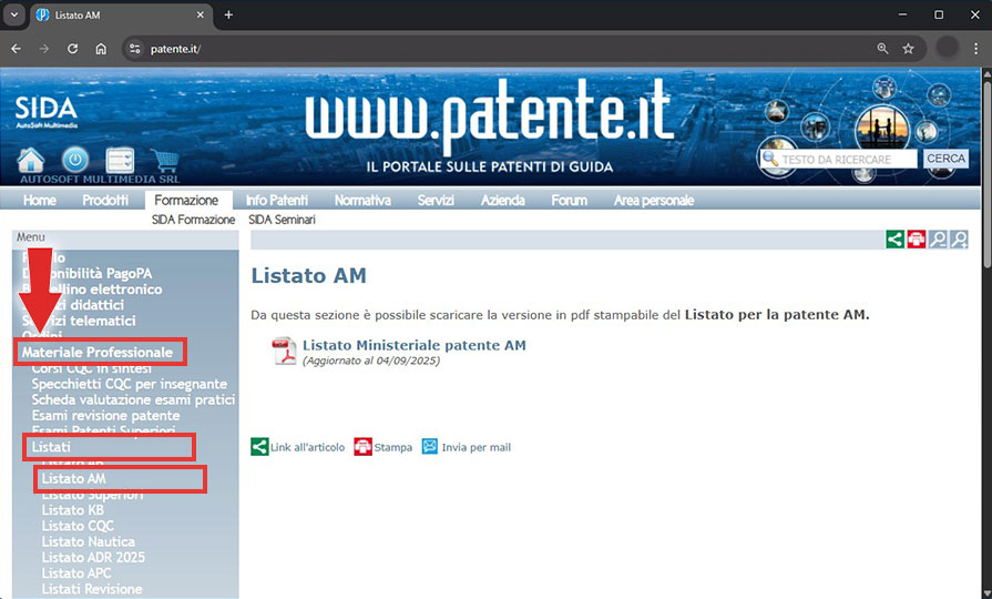 Nell'area personale del sito www.patente.it ("Materiale professionale" --> "Listati" --> "Listato AM") è pubblicata la versione aggiornata del listato ministeriale AM.
