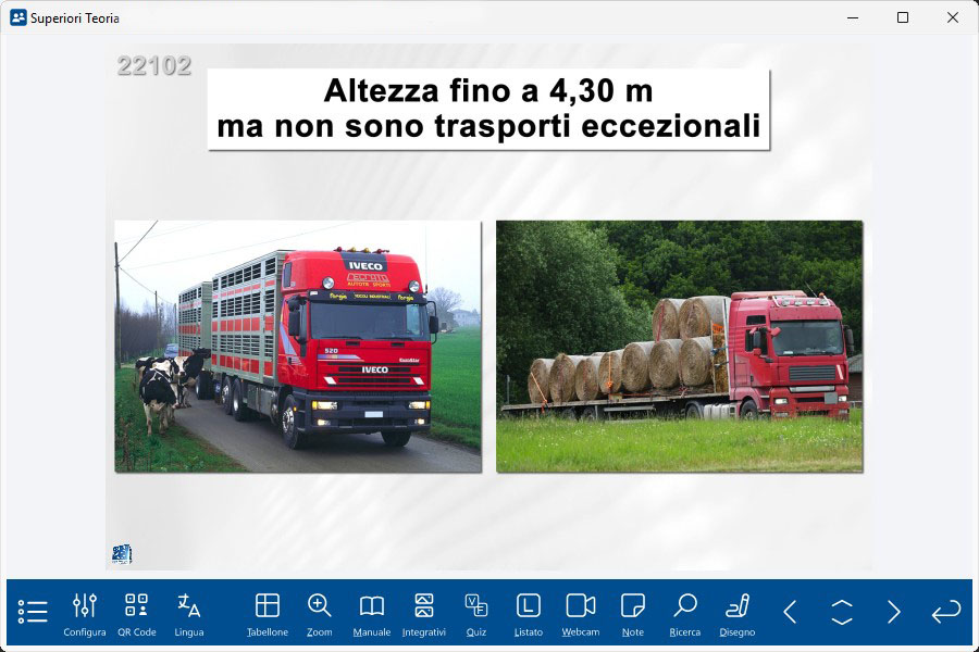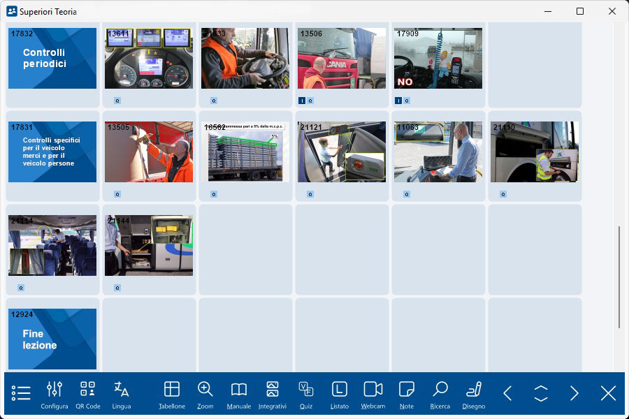 Abbiamo aggiornato, integrato e migliorato tutte le aule dei corsi delle patenti superiori con un abbinamento più pertinente delle immagini ai quiz e aggiornando le immagini più datate. Abbiamo integrato le immagini inserite nelle varie aule per coordinarle con le nuove videolezioni delle categorie superiori.