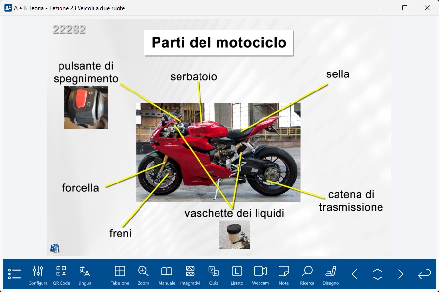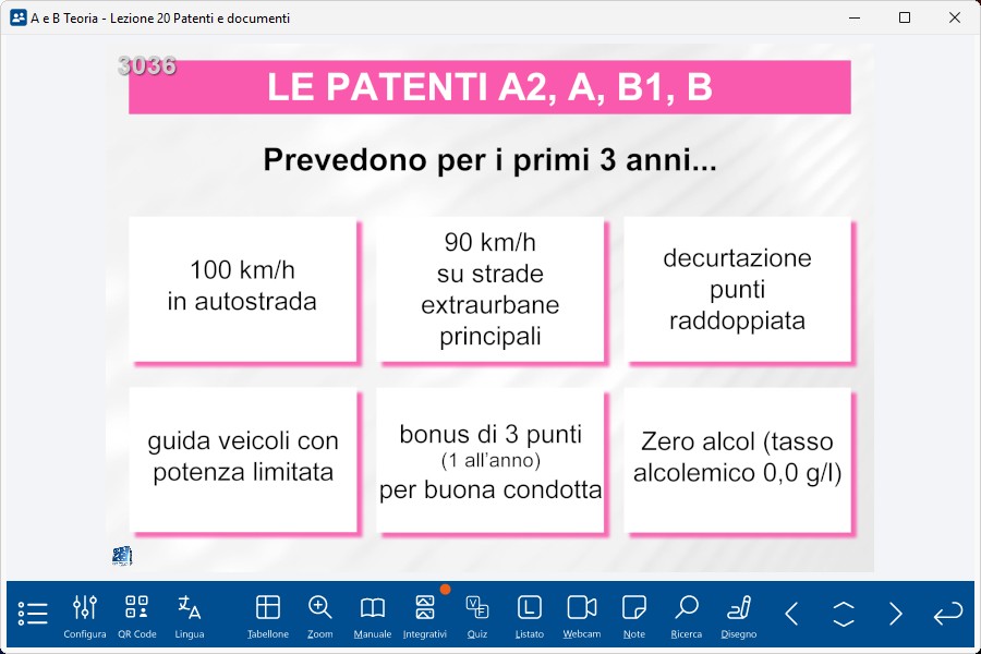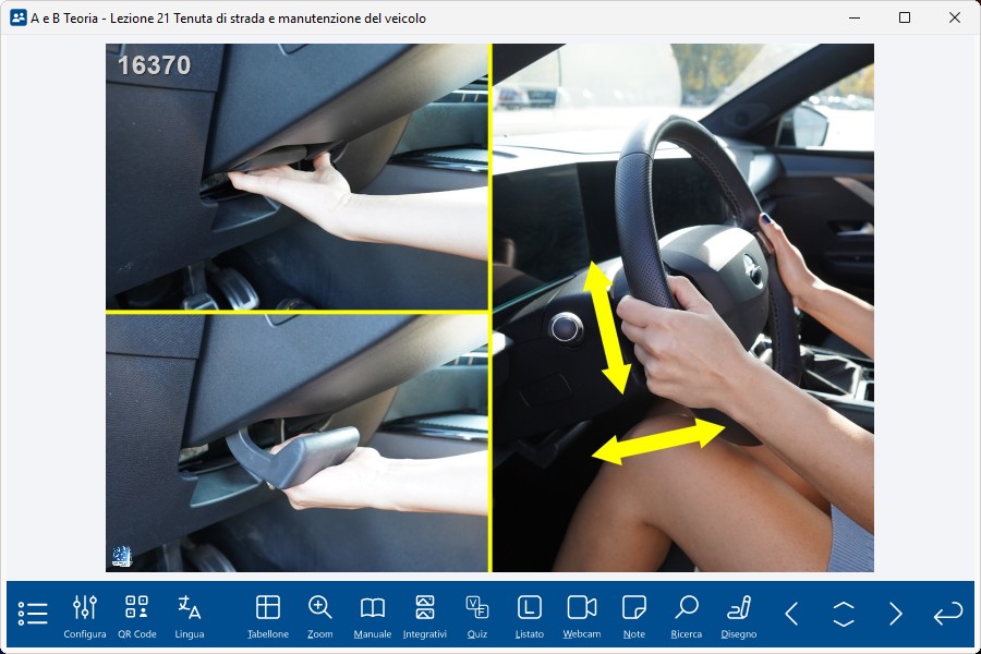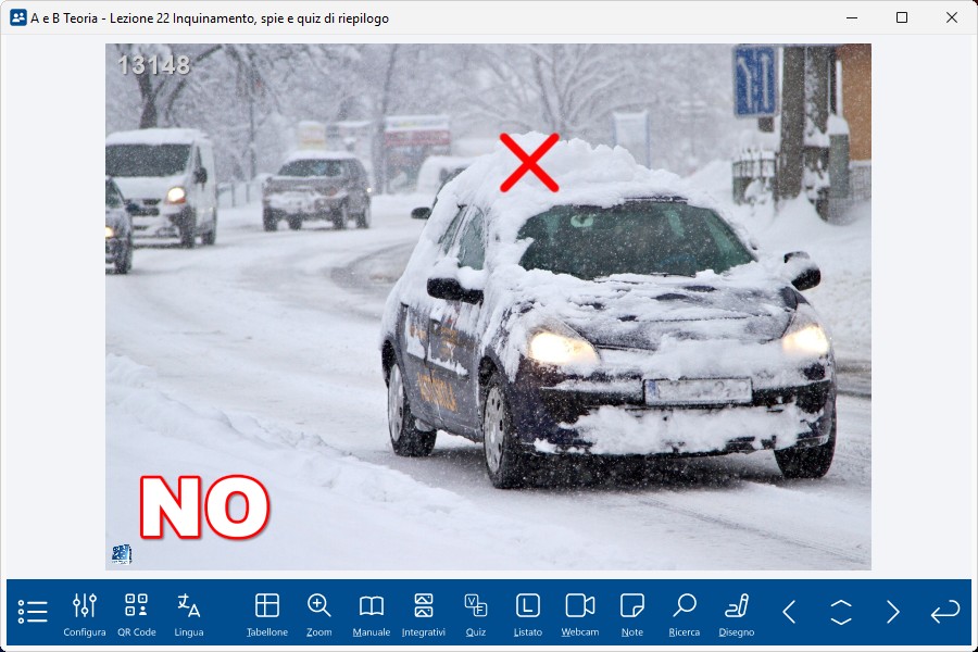 Abbiamo realizzato nuove immagini e migliorato alcune immagini già presenti, grazie anche a segnalazioni di alcuni clienti. Inoltre, abbiamo aggiunto alcune immagini che riguardano situazioni stradali non richieste dai quiz, ma eventualmente utili per un approfondimento.